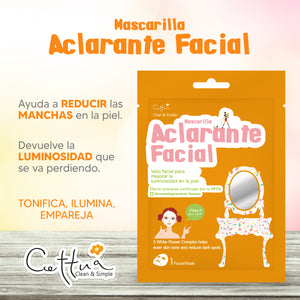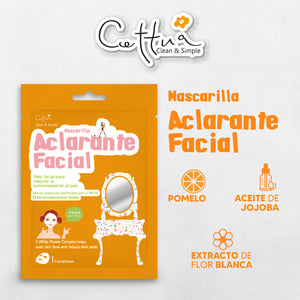La Mascarilla Aclarante Facial Cettua es un velo facial para mejora la luminosidad en la piel. Formulada con extracto de pomelo y aceite de jojoba, dejándola radiante y con un tono más uniforme.