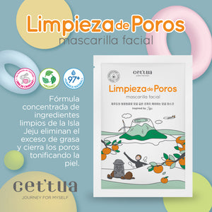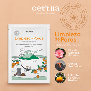 La Mascarilla Limpieza de Poros Cettua es eco-amigable y biodegradable diseñado para purificar y cerrar los poros. Formulada con flor de camelia japónica, ceniza volcánica y extracto de citrus unshiu, esta mascarilla elimina el exceso de grasa, desintoxica los poros y reduce su tamaño, dejando la piel tonificada y fresca.