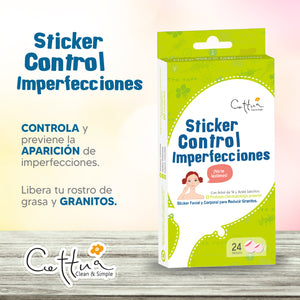 El Sticker Control Imperfecciones Cettua ayuda a mejorar la apariencia de granitos e imperfecciones en el rostro y cuerpo. Formulado con extracto de árbol de té, ácido salicílico y extracto de sauce canadiense, este sticker transparente y mate actúa de manera efectiva para reducir la apariencia de imperfecciones, dejando la piel más uniforme.