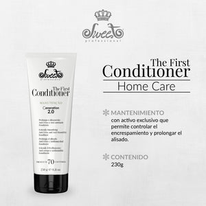 El The First Conditioner Home Care es un acondicionador diseñado para complementar el cuidado diario del cabello alisado. Formulado con ácido hialurónico y ácido láctico, este producto repara, hidrata y protege el cabello, corrigiendo las fisuras de la cutícula y prolongando el efecto liso. Ideal para clientes que buscan mantener su cabello saludable entre visitas al salón.