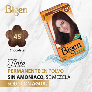 Descubre el tinte permanente sin amoniaco Bigen, una solución innovadora para realzar el color natural de tu cabello. Desarrollado con tecnología japonesa y extractos de frutos orientales y algas, este tinte ofrece un cubrimiento total y duradero de las canas, dejando tu cabello con un brillo espectacular. Su fórmula suave y libre de amoniaco es ideal para todo tipo de cabello, garantizando resultados naturales y saludables.