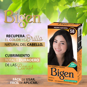 Descubre el tinte permanente sin amoniaco Bigen, una solución innovadora para realzar el color natural de tu cabello. Desarrollado con tecnología japonesa y extractos de frutos orientales y algas, este tinte ofrece un cubrimiento total y duradero de las canas, dejando tu cabello con un brillo espectacular. Su fórmula suave y libre de amoniaco es ideal para todo tipo de cabello, garantizando resultados naturales y saludables.