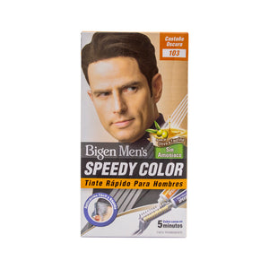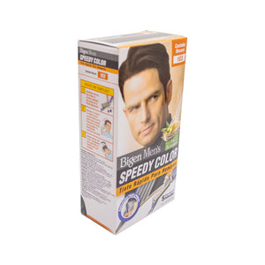Bigen Men´s Speedy Color es un tinte permanente con tecnología Japonesa diseñado para hombres, su fácil y práctica aplicación en solo 5 minutos garantizan cobertura total de las canas devolviendo el color natural del cabello.