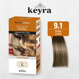 KIT Tinte Keyra Rubio Muy Claro Ceniza 9.1 + KeyraOX 20 Vol
