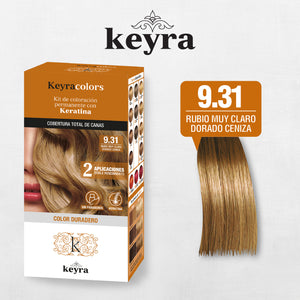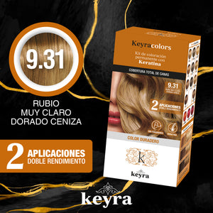 KIT Tinte Keyra Rubio Muy Claro Dorado Ceniza 9.31 + KeyraOX 20 Vol
